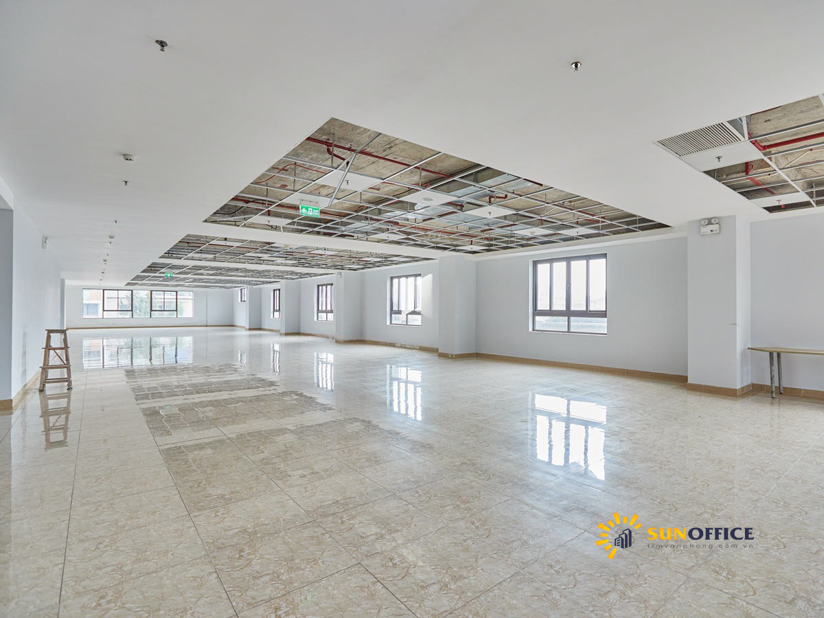 - Khối văn phòng mặt bằng bàn giao: Bàn giao đầy đủ, trần, sàn, điều hòa, chiếu sáng.